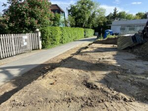 Das Haus Hesse und der historische Hessegarten in drängender Nähe zur Baustelle für ein 11- Parteienhaus im Luxussegment